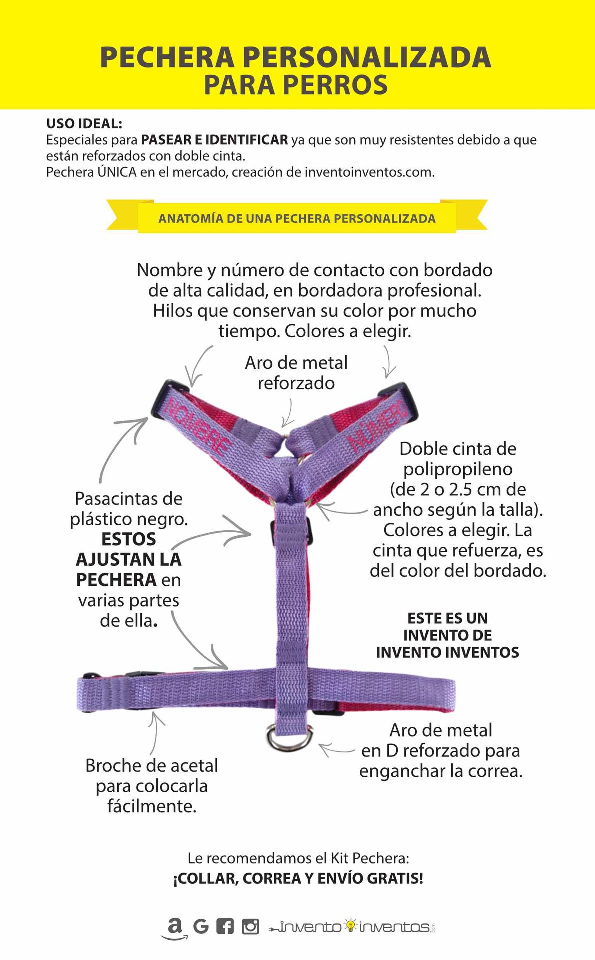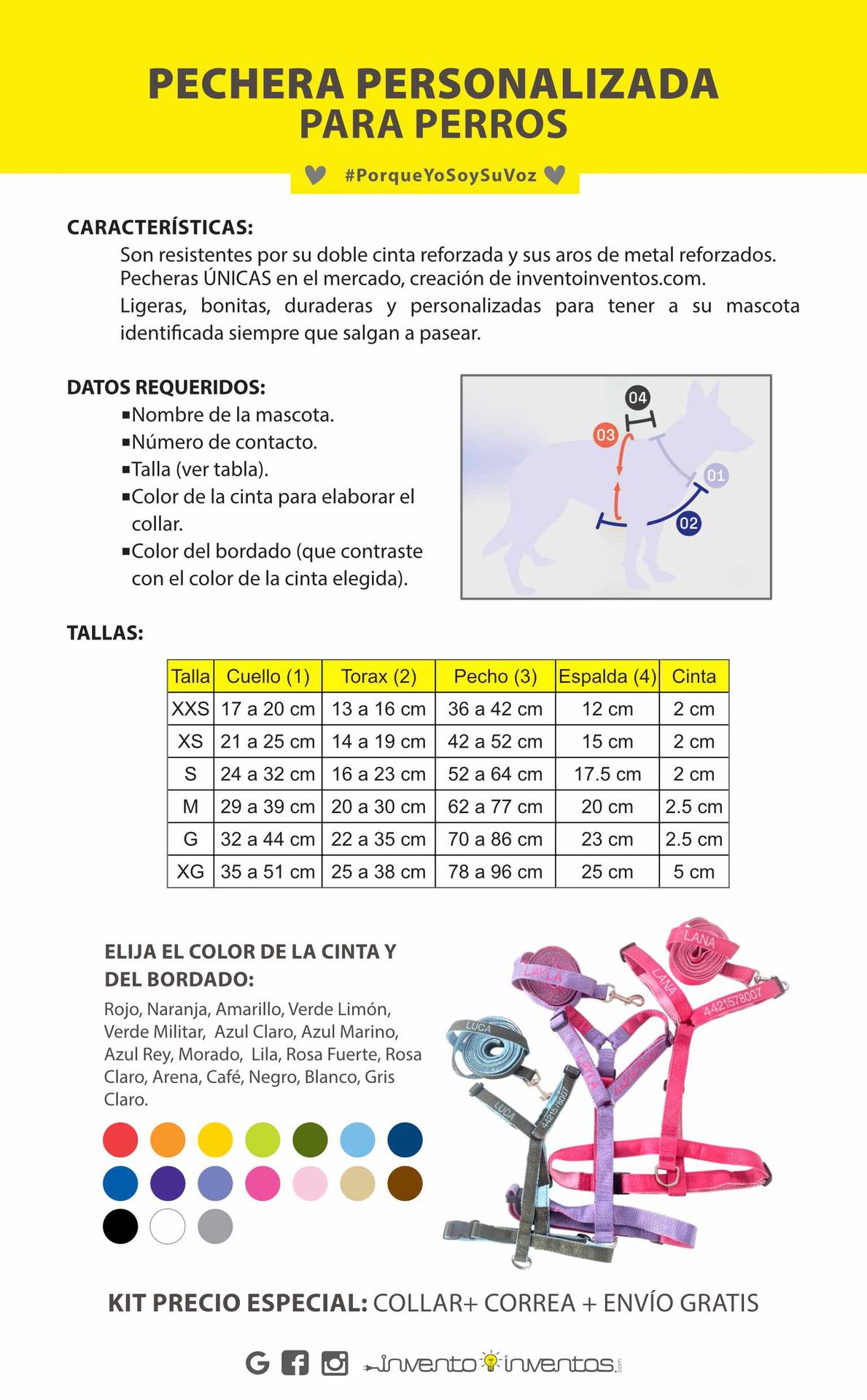 El kit de pechera incluye la pechera + 1 correa de 1.50 metros de largo (por un pequeño costo extra podemos hacerla mas larga si así lo necesitas) + ENVÍO DE REGALO